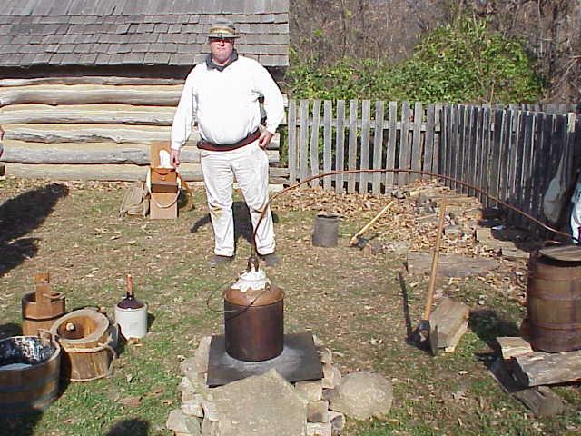 Lincoln's New Salem Village ....Mak'in some whiskey, in Lincoln's New Salem Village, circa 1833, or it could be Hannibal or Shelbyville, MO at the same date, or Fayette and Westfield, IA in 1848.