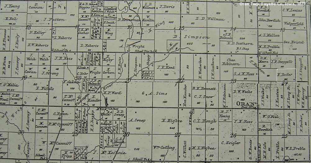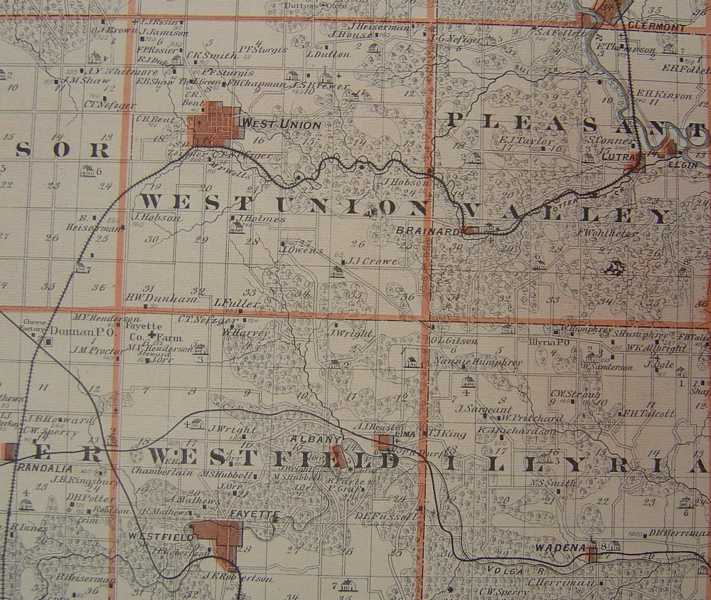 Above: a portion of Jefferson Twp, Fayette Co, Iowa, 1879 Plat.